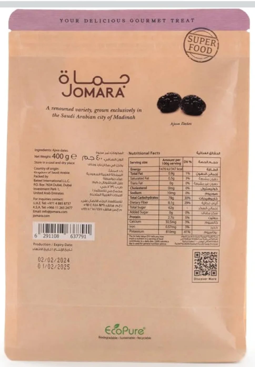 Premium Ajwa Madinah Dates in resealable packaging