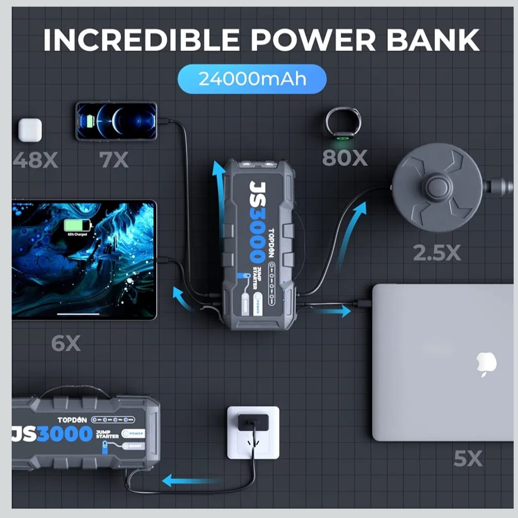 TOPDON Car Battery Jump Starter, V3000 12V 3000A Battery Booster Jump Starter