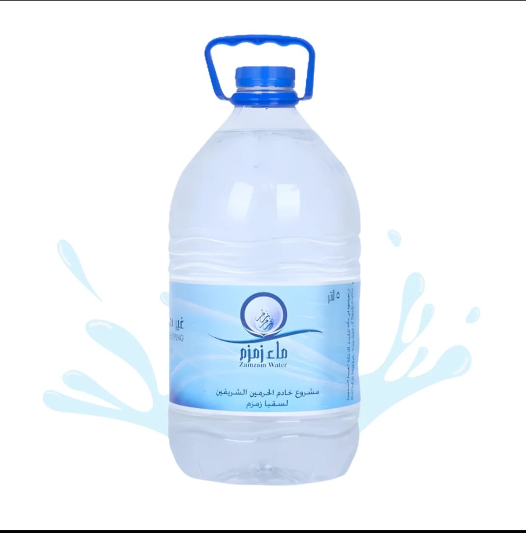 Zamzam Water is pure and sacred water flowing from the Zamzam well in Makkah, known throughout history for its unique virtues and spiritual significance. It is distinguished by its clarity and purity, making it suitable for drinking and daily use. Prophetic traditions describe it as a nourishing drink and a healing cure, highlighting its special place in faith. This product comes in a practical 5-liter bottle, ideal for home use or as a meaningful gift symbolizing blessings and spirituality.